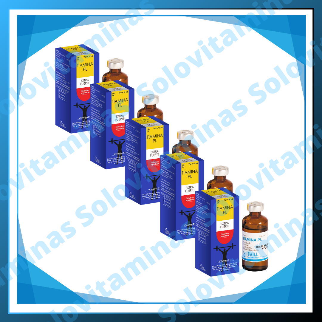 TIAMINA PL Ampolla Vial 10ml 5 PACK contiene 5 cajas con 1 Vial de Vitamina B1 (Tiamina) 100 mg cada una.